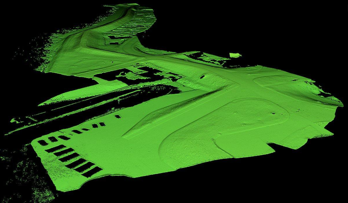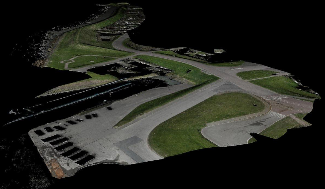 Het eindproduct is een technisch hoogstandje. Hiernaast zie je een van de ingevlogen dijken; onze foto’s zijn verwerkt tot een uiterst nauwkeurig 3D-model. In deze software kan een inspecteur nu op afstand, comfortabel achter een laptop, een volledige analyse doen van de staat van de dijk zonder zelf het veld in te hoeven.