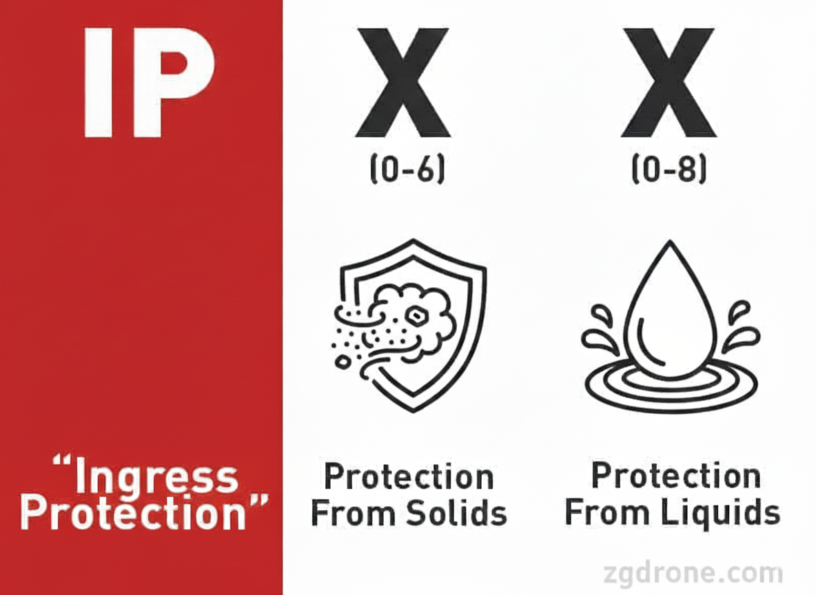 In the Netherlands, rain and wind often play a major role. Fortunately, Zero Gravity’s drones are equipped with an IP rating (Ingress Protection), an international standard that indicates the degree of protection against moisture and water. This classification varies in levels.