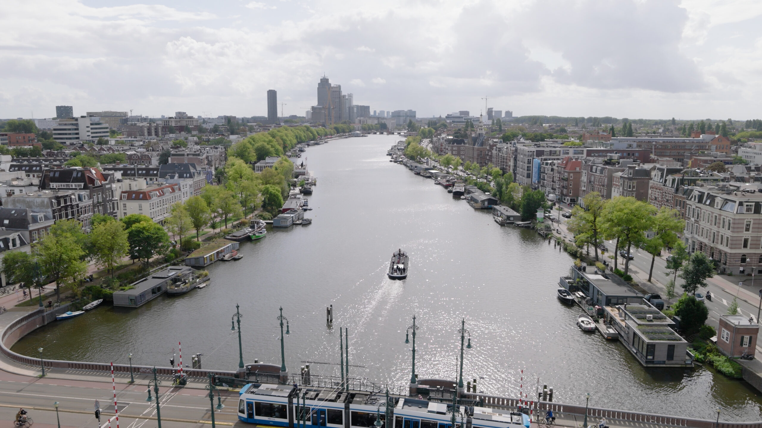 The Fitfluencers sailed along quite a stretch of the Amstel River through Amsterdam. Because the boat was constantly moving and we were bound by strict airspace time slots, we devised a clever ‘relay plan.’