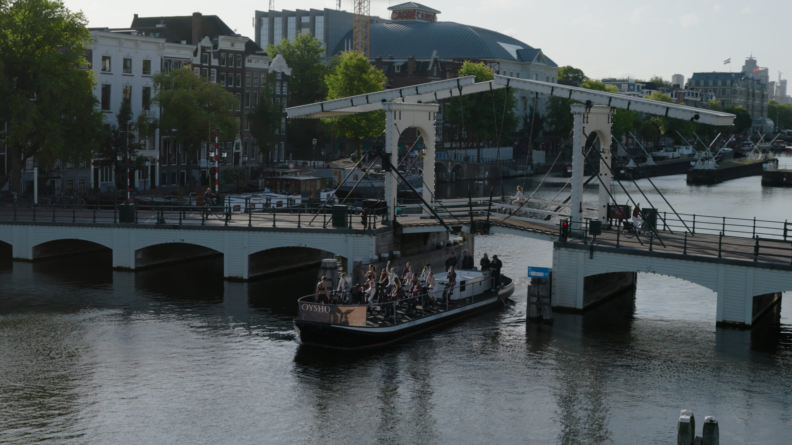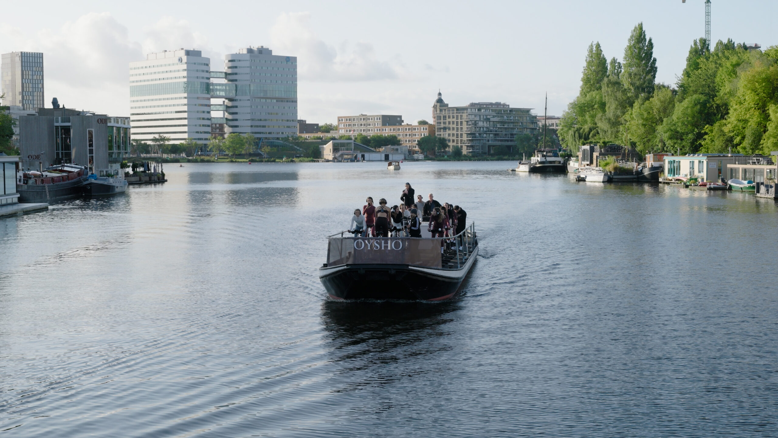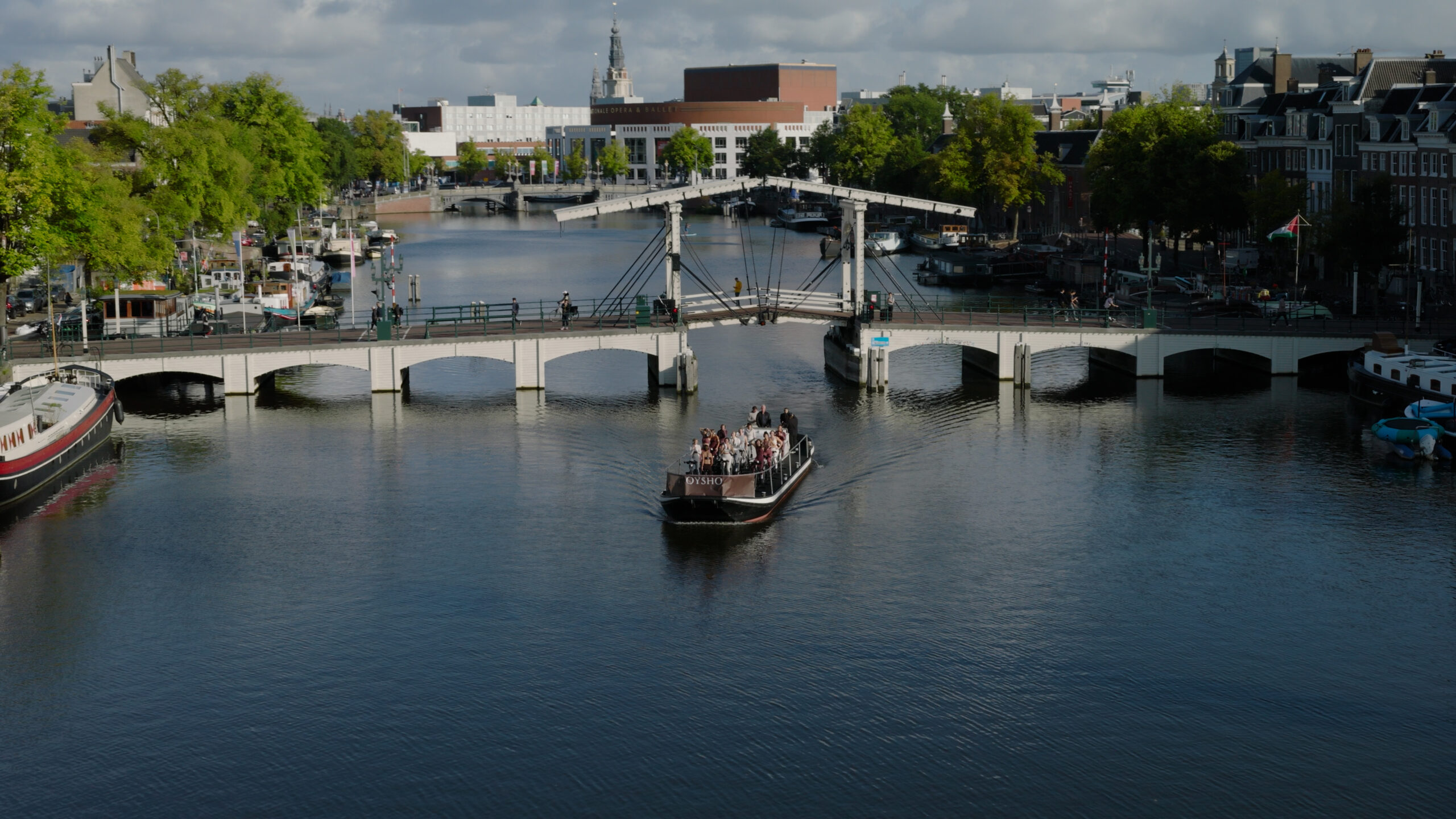Commissioned by 8 The Agency, Zero Gravity supported the launch of the sportswear brand Oysho in Amsterdam. The campaign was ambitious: a group of well-known ‘fitfluencers’ exercising (fitness and cycling) on a flatboat cruising down the Amstel. ZG was tasked with capturing this unique spectacle from the air, perfectly blending the dynamics of the city with the energy of the brand.